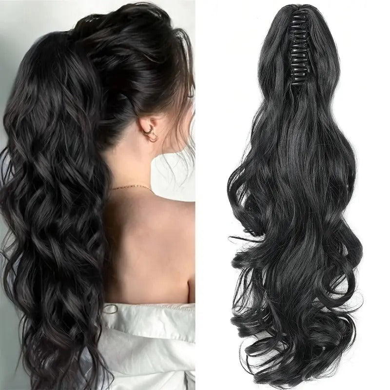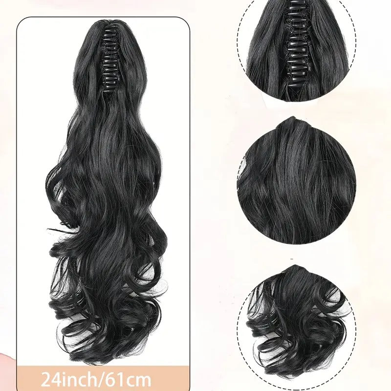 24-Inch Elegant Black Wavy Ponytail Extension with Clip-in Design - Perfect for Daily Use, Parties, Cosplay, and Rainbow Themed Events, Party Hair Accessory | Wavy Texture | Highquality Fiber, Hair Accessories.