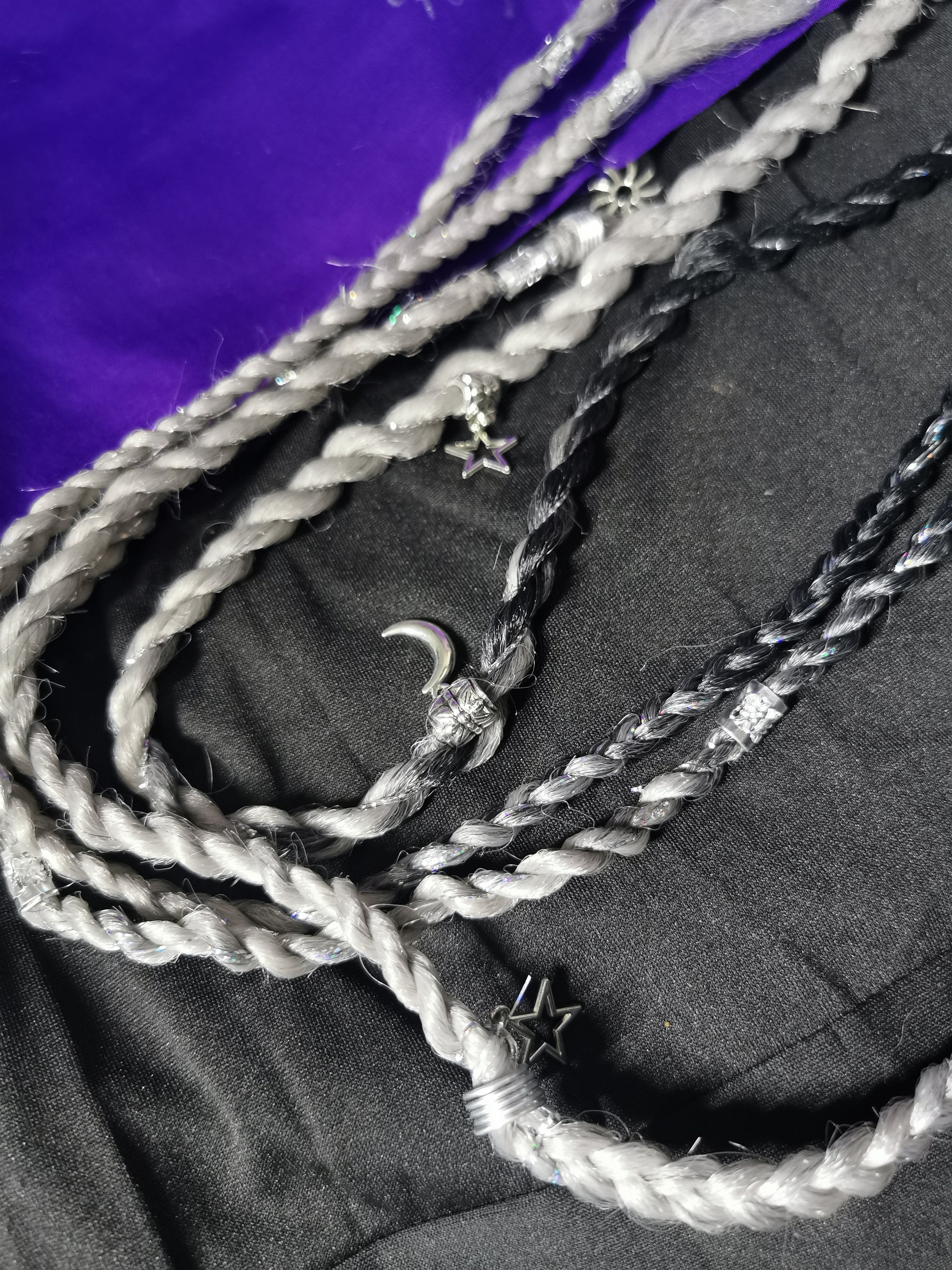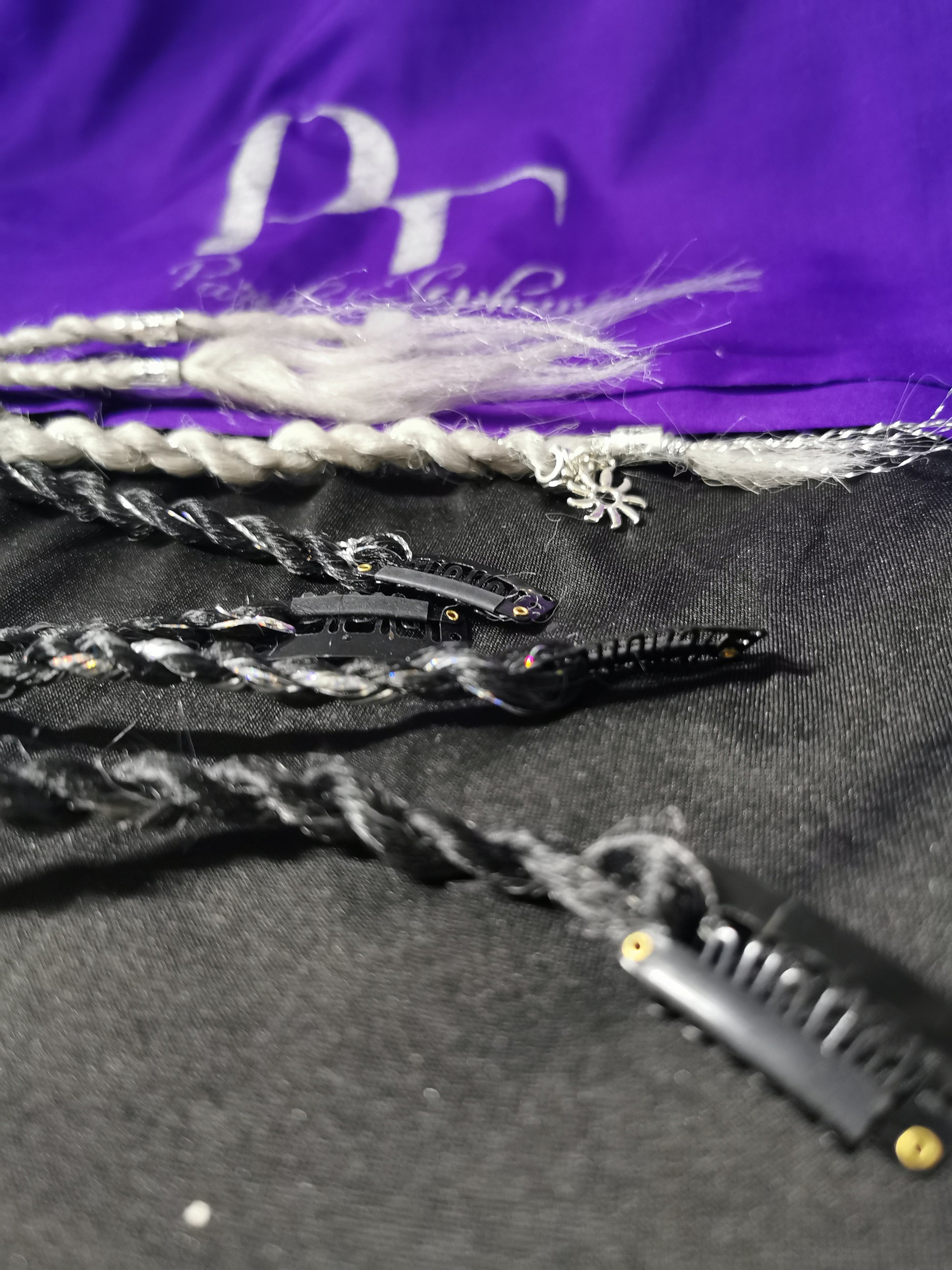 4 PCS Braid Hair Extensions, Clip In Hair Extensions with Silver jewelry accesories Black / Silver Baby Braids Front Side Bang Curtain Bang Long Braided Hair Piece Natural Soft Synthetic Hair Sleek Looking Hair Extensions For Women Perfect For Halloween Costumes And Daily Wear 20 Inch.