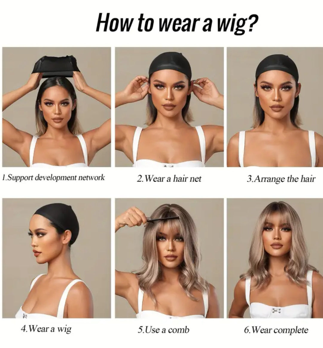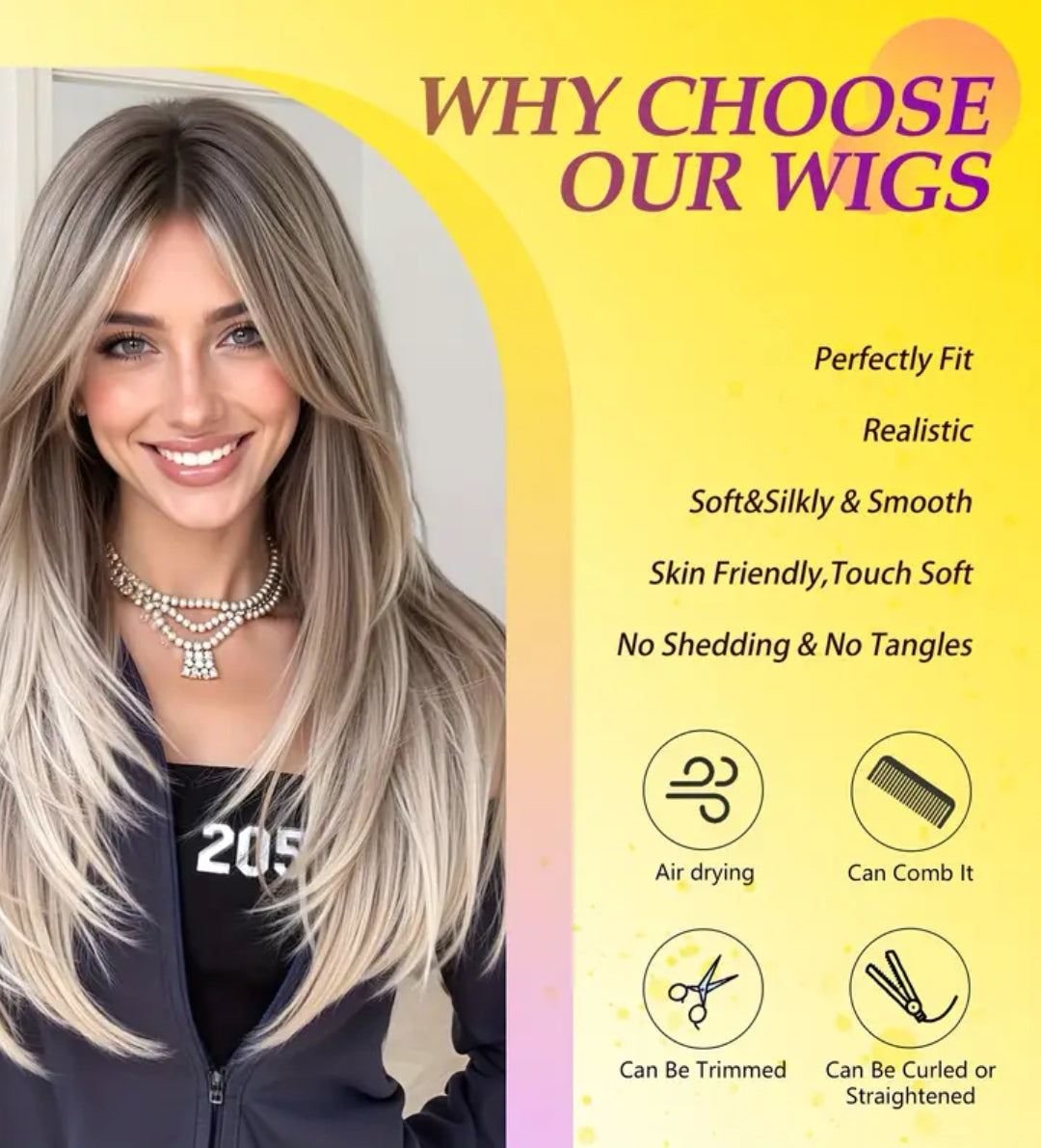 Women's 22-Inch Brown Straight Wig with Bangs - Heat-Resistant Synthetic Hair, 150% Density -Looking Volume, No Glue Needed Rose Net for Brown Hair (Blonde/Dark Tones) - Cosplay, Daily Use, Wearing in 1 Minute – Ideal.