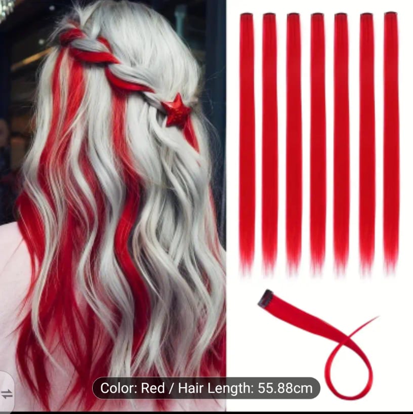 55.88cm / Red 1pcs Colorful Clip-In Synthetic Hair Extensions, 55.88 cm 55, 77 Long Straight Hair, Halloween Party Christmas New Year Gift and Daily Wear, Suitable for Women and Girls, Bright Colors, Easy to Wear.