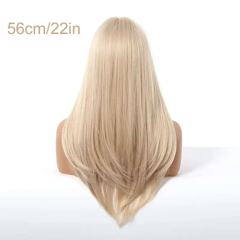 55.88cm Blond Long Straight Synthetic Wig with Bangs - Blonde Hairpiece, Natural Look & Fullness, Lightweight & Easy Maintenance for Everyday, Parties, Cosplay - Women's Elegant Hairstyle
