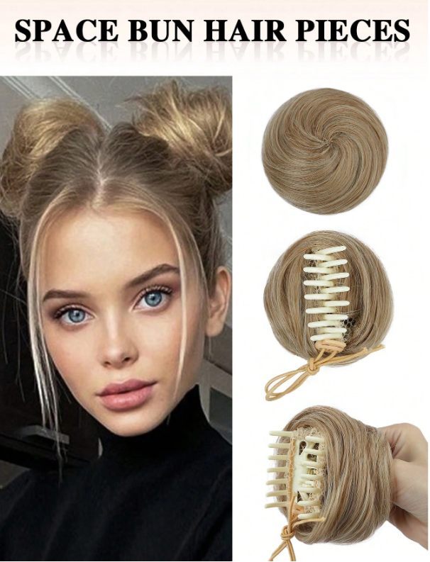 2Pcs Mini Claw Clip In Messy Cat Ears Bun Hair Piece, Space Hair Bun Extensions Messy Curly Donut Chignon Synthetic Bun In Hairpieces Accessory For Women Girls