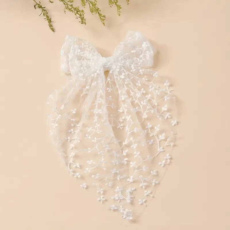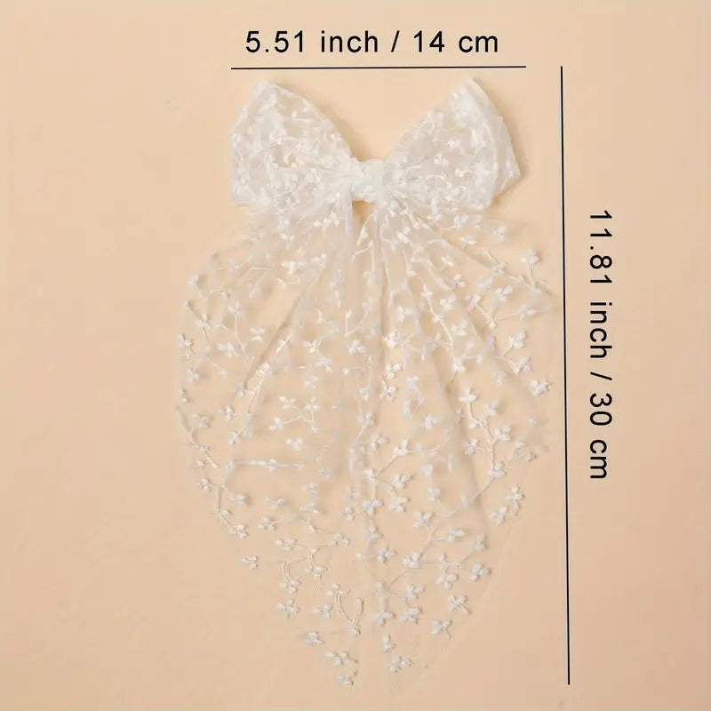 Elegant Tulle Bow Hair Clip with Floral Lace Design - Large Princess Hair Clip for Girls, Perfect for Weddings, Parties & Summer Events, Mixed Colors, Wedding Hair Accessories, Sophisticated Craftsmanship.