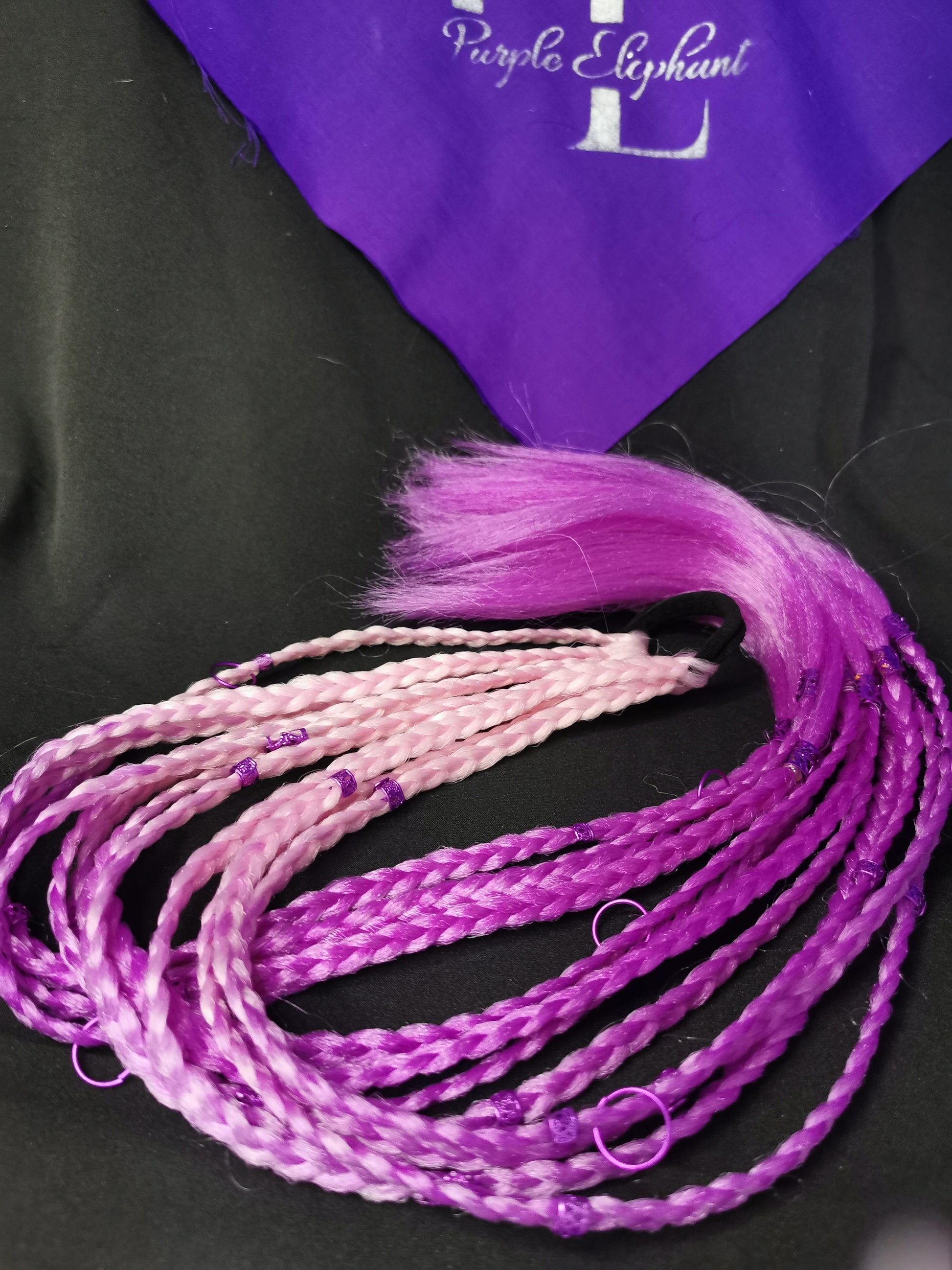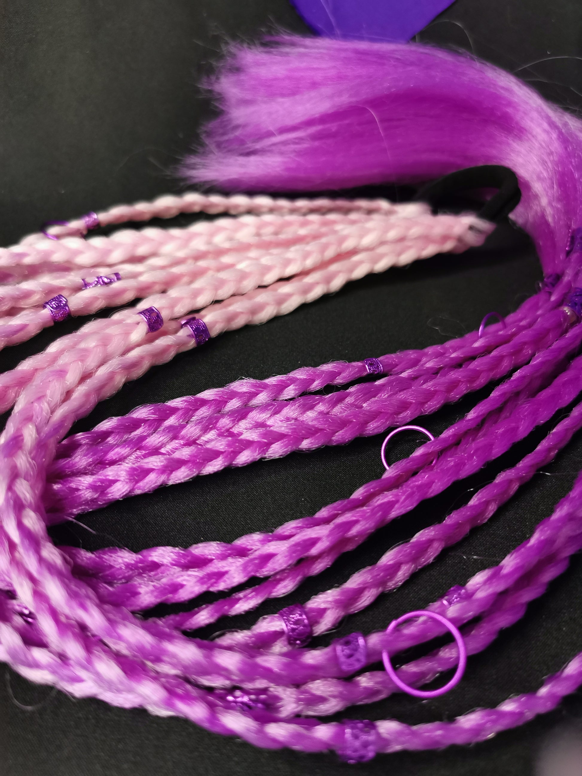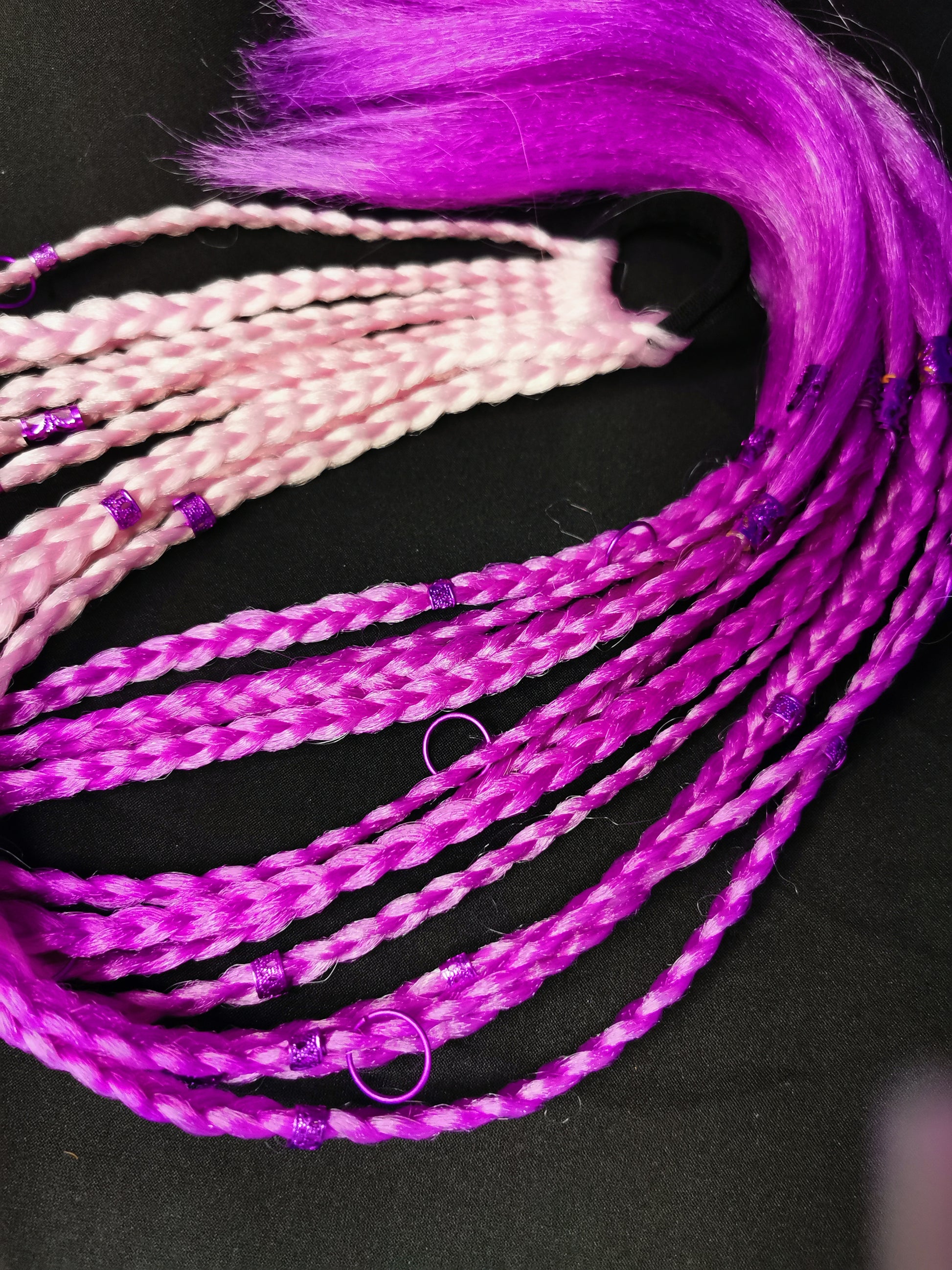24 inch, Purple, Pink Colored Braids, Hair Extensions With Rubber Bands, Rainbow Braided, Synthetic Hairpieces, Ponytail, Hair Accessories, False Hair For Girls, Hair, Hairpieces, In The Party Cosplay, Purple detailed ring hair jewelry.