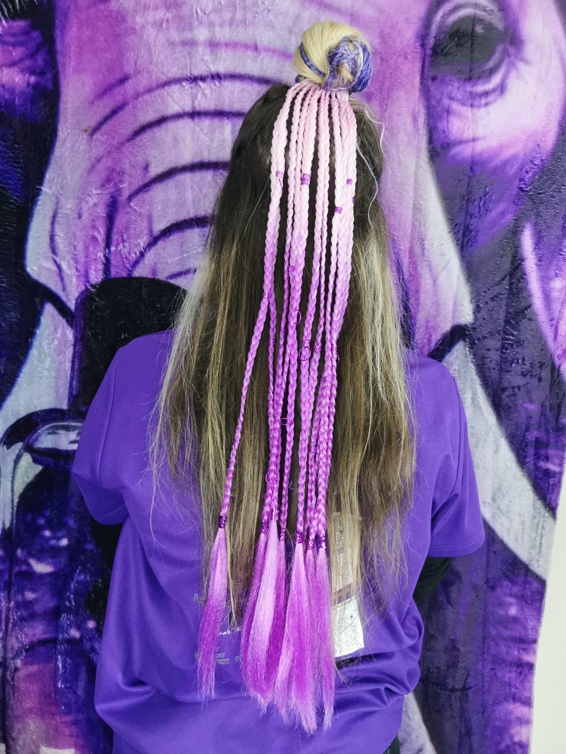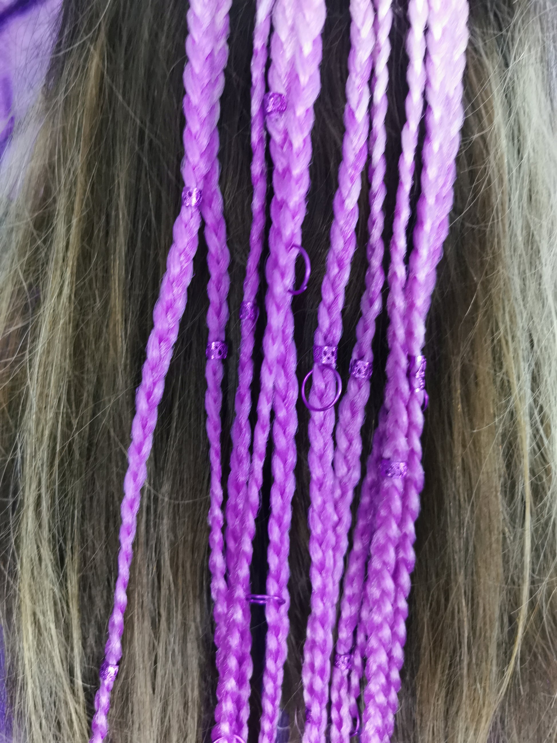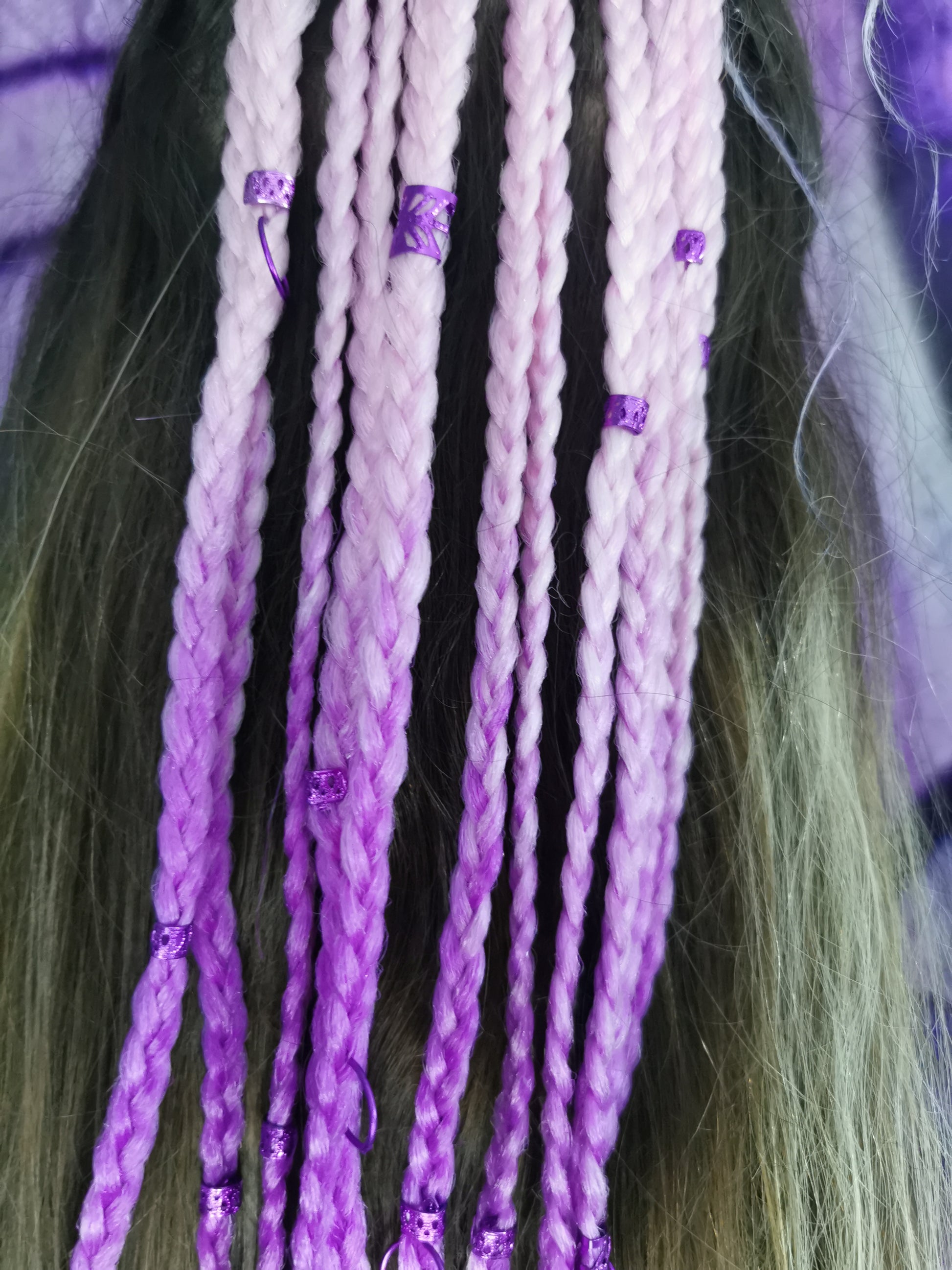 24 inch, Purple, Pink Colored Braids, Hair Extensions With Rubber Bands, Rainbow Braided, Synthetic Hairpieces, Ponytail, Hair Accessories, False Hair For Girls, Hair, Hairpieces, In The Party Cosplay, Purple detailed ring hair jewelry.
