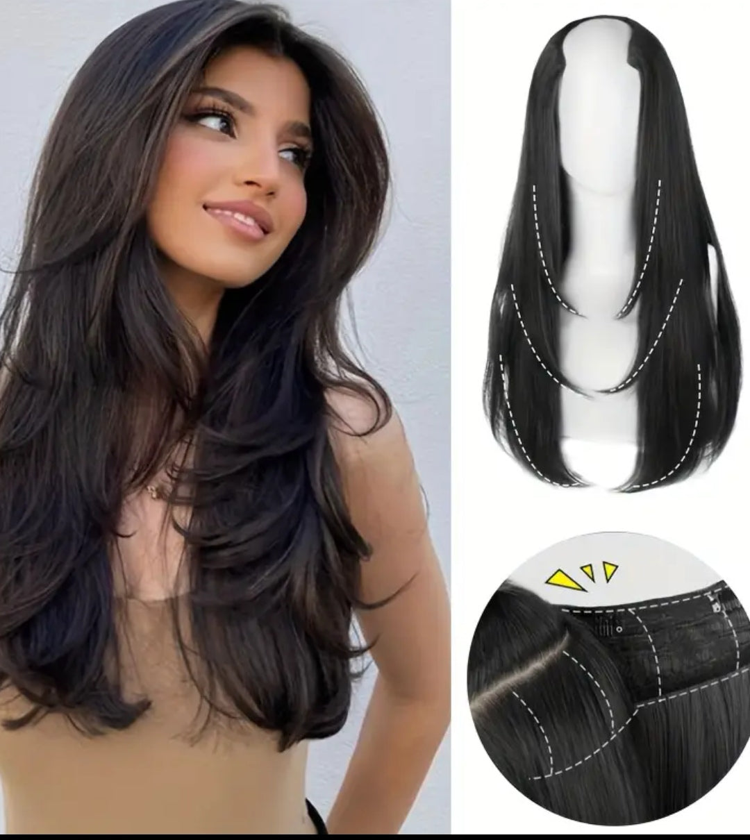 U Part Wig Straight Hair Wigs For Women 45.72cm Black U Shape Clip In Half Wigs Natural Color Invisible Seamless Hair Extension Full Head Long Clip In On Hair Pieces For Women Black Hair Clips Hair Accessories Halloween Christmas.