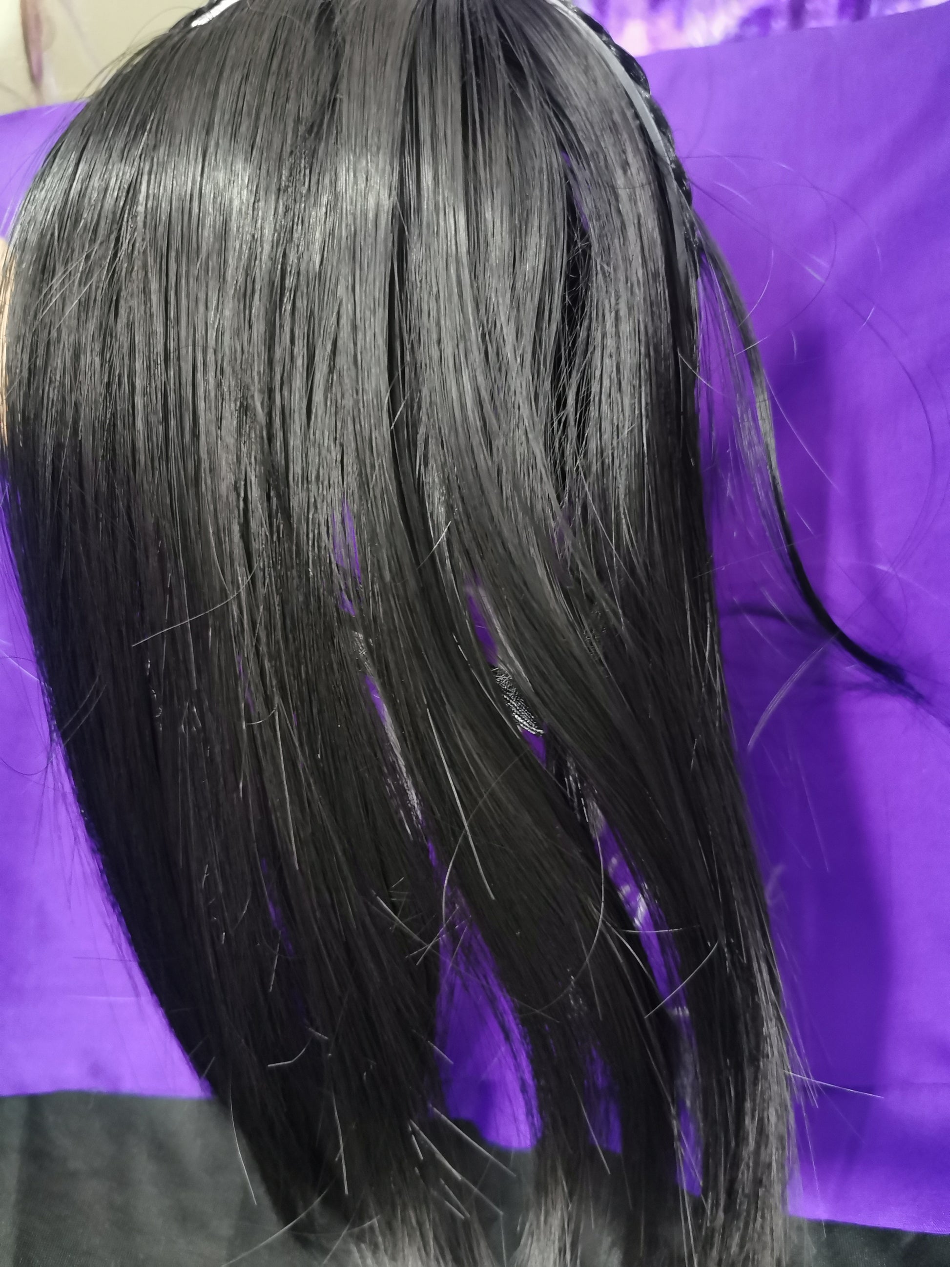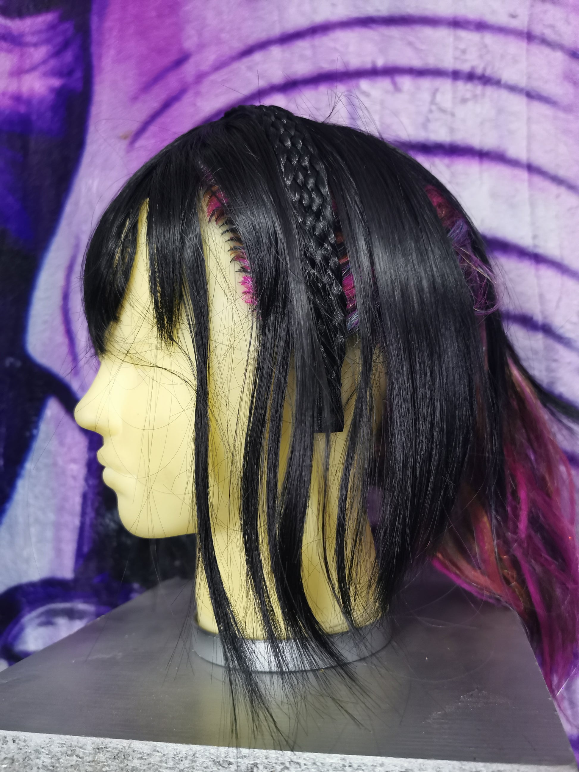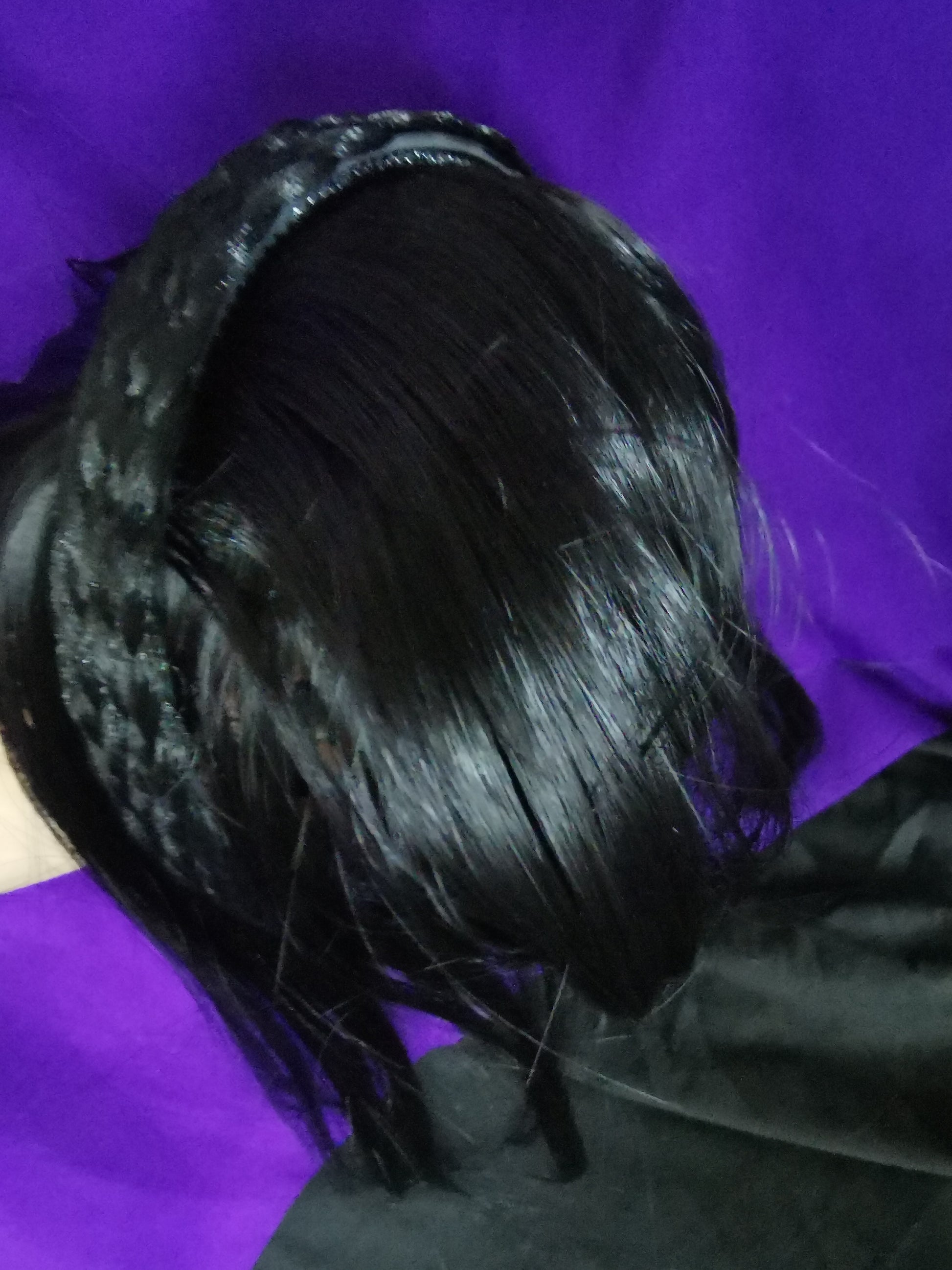 Women Clip in Bangs with Band Straight Hairpiece for Thinning Hair Chignon Black.