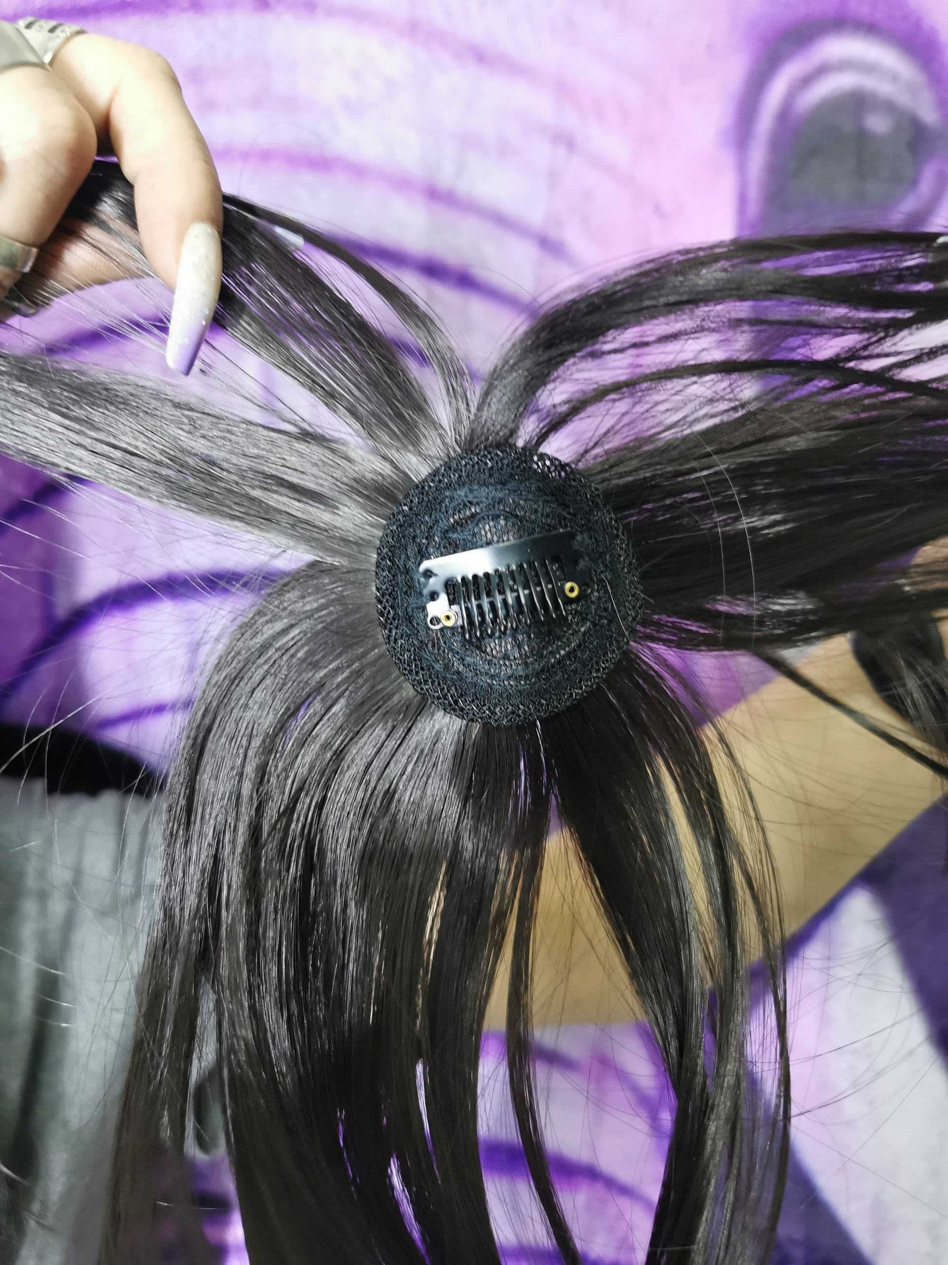 Black - Hair topper designed to conceal hair loss or thinning in specific areas of the scalp, clips to your existing hair to add volume and coverage, offering a less-intrusive alternative to a full wig. Heat-friendly synthetic hair affordable option that holds its style well, even after washing. Heat-friendly varieties can be styled with low heat settings. Hair toppers use pressure-sensitive clips to attach securely to your existing hair.
