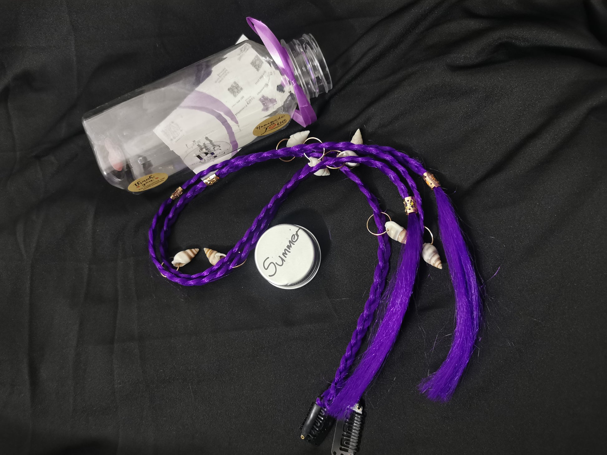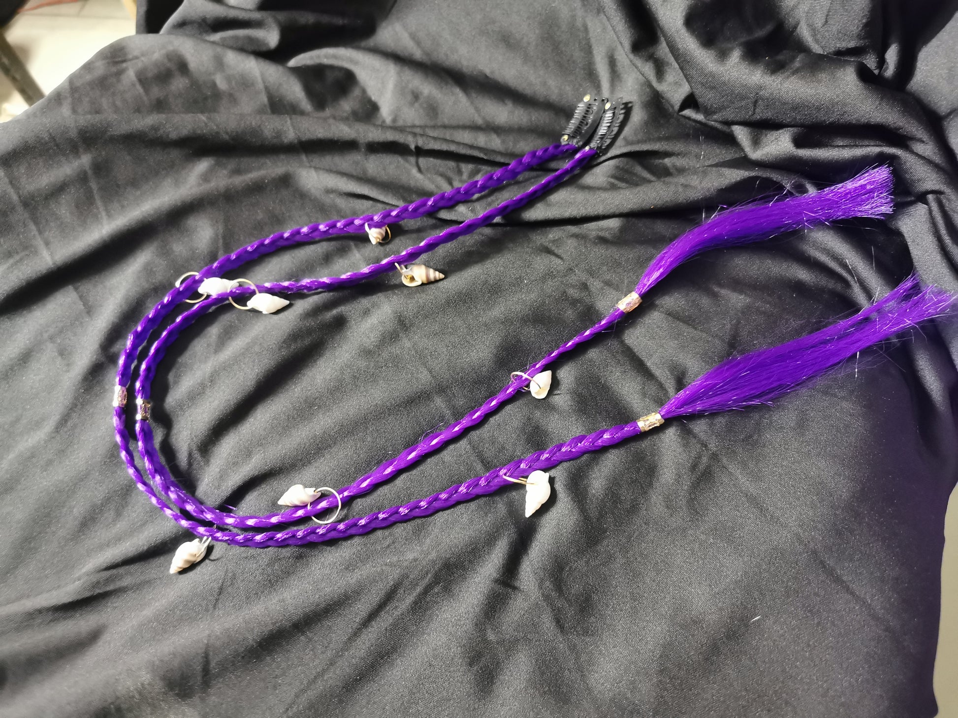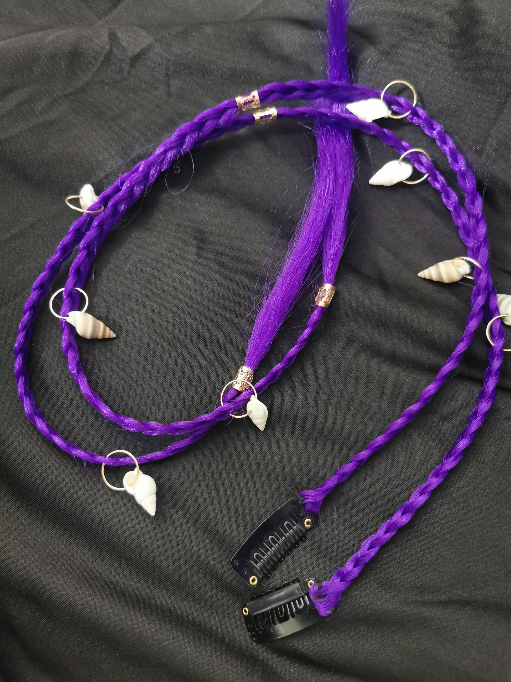 2 PCS Braid Hair Extensions, Clip In Hair Extensions Purple Baby Braids Front Side Bang Curtain Bang Long Braided Hair Piece Natural Soft Synthetic Hair Sleek Looking Hair Extensions For Women Perfect For Halloween Costumes And Daily Wear 20 Inch (Shell b