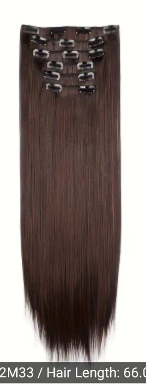 66.04cm 6pcs Heat-Resistant Synthetic Hair Extensions Clips-On - Full Head Coverage Long Straight Hair with Highlights Dark Brown- Clip-In Wig-like Hair Add-Ons for Women &, Easy to.
