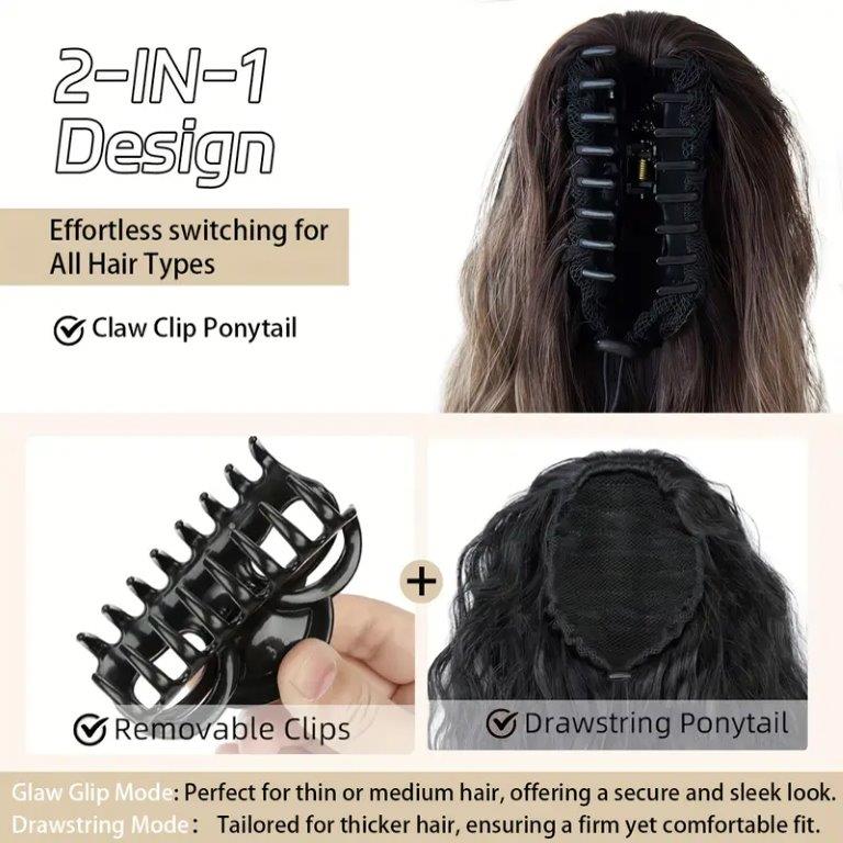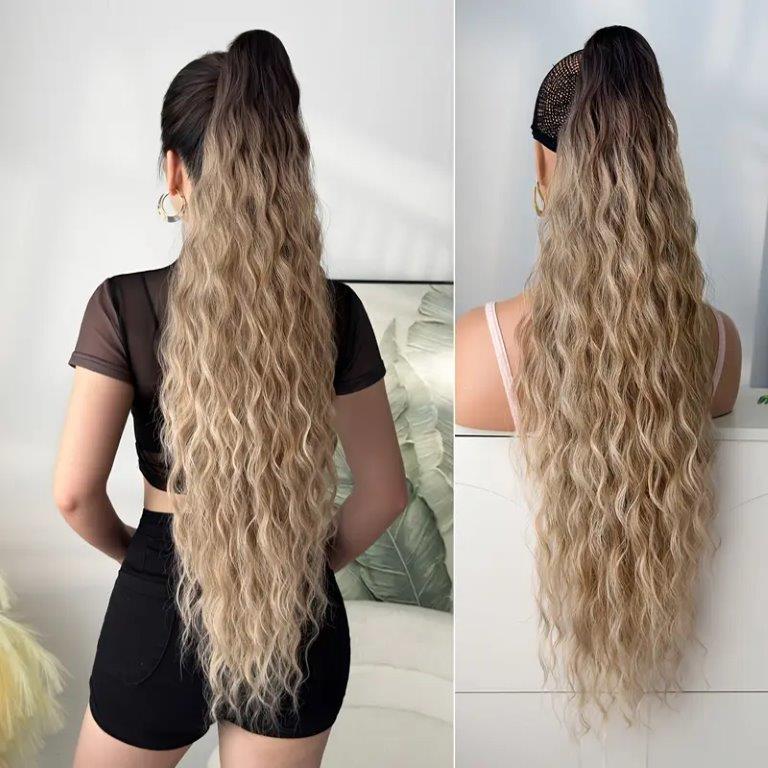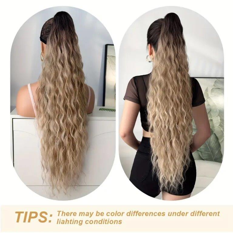 Long wavy Ombre Ponytail Extension - Heat-Resistant Synthetic Fibre, Dark Brown to Dark Blonde, Woman's Daily Hair Accessory, Ponytail Holder/Wavy Texture Heat Resistant Fibre, Ponytail Hairpiece.