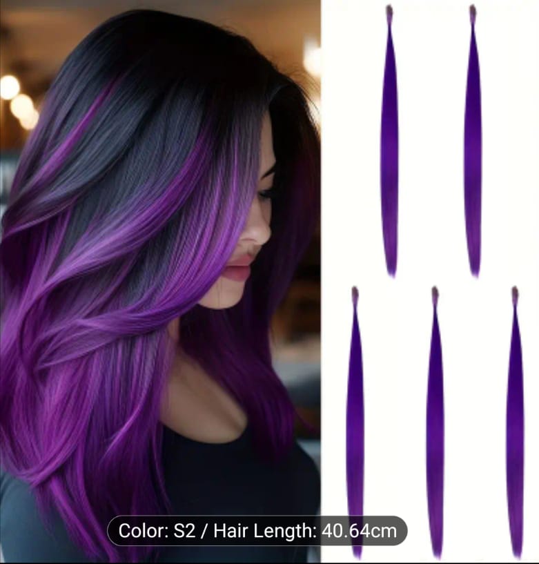 Purple- 10Strands 40.64 cm Party Color Hair Extensions Set I-Tip Fashion Long Straight Pieces Synthetic Heat Resistant Top Extensions Hair Accessories for Christmas and Daily Wear.