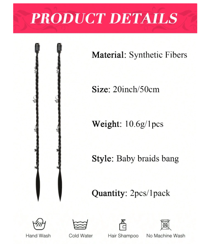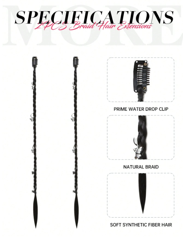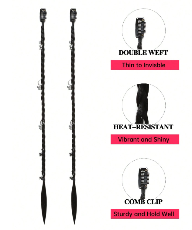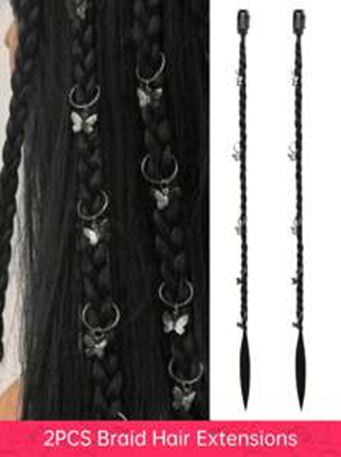 2 PCS Braid Hair Extensions, Baby Hair Braids 20inch Boxing Clip In Braid Synthetic Natural Black Braid Extensions For Women's Daily Party Use ( Silver Butterfly Decoration)