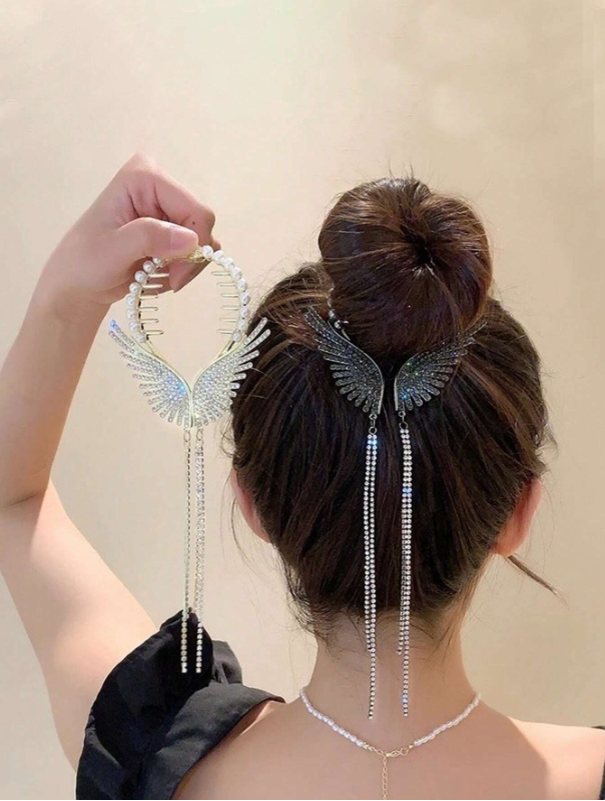 1pc Angel Wing GOLD Tassel Hair Clip, With Faux Pearl And Rhinestone Decoration, Creating Elegant Appearance, Perfect For Girls To Clip On Buns Or Hairstyles As An Accessory, Casual Princess Style Hair Ornament For Women And Girls, Suitable As A Gift Or A