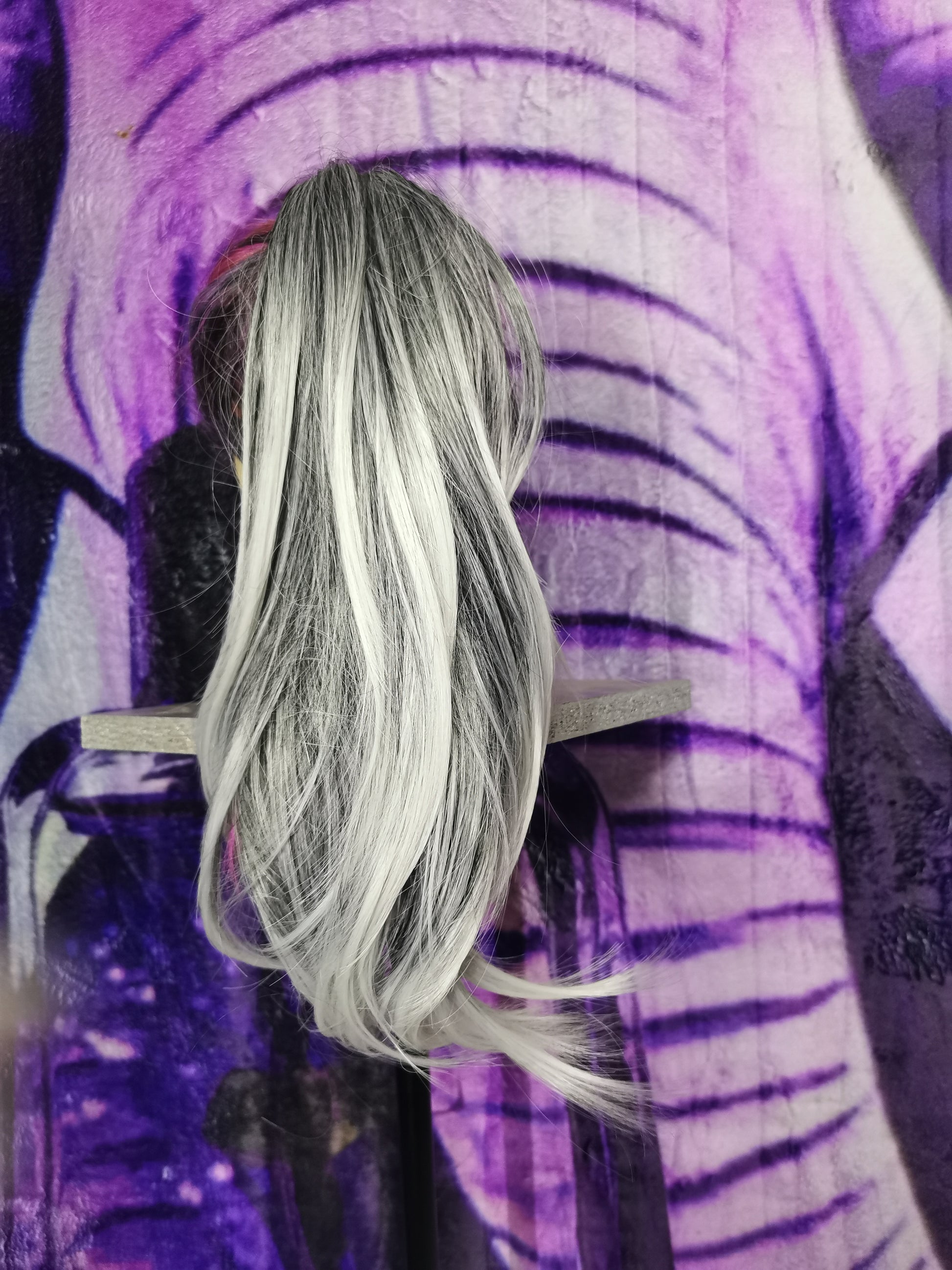 Elegant Women's Gray Ombre Long Straight with slight Curl Claw Clip Ponytail Extension - High-Quality Synthetic Hairpiece with Natural-Looking Waves, Hair Accessories.
