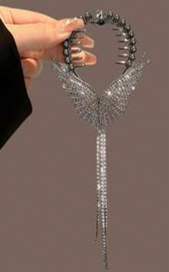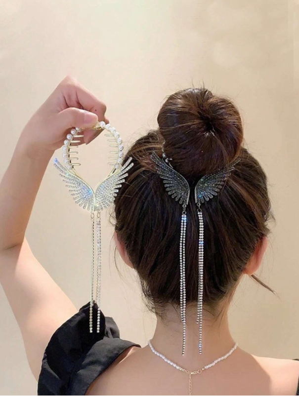 1pc Angel Wing BLACK Tassel Hair Clip, With Faux Pearl And Rhinestone Decoration, Zinc Alloy. Creating Elegant Appearance, Perfect For Girls To Clip On Buns Or Hairstyles As An Accessory, Casual Princess Style Hair Ornament For Women And Girls, Suitable