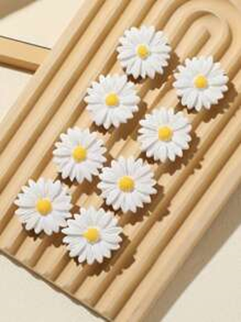 Multicolor / one-size / 5pcs White Crinkle Daisy Hair Clips, Made Of Resin Material, Suitable For Different Occasions And Outfits - Suitable For Girls And Women, Whether Commuting, Dating Or Gathering, It Can Quickly Create A Exquisite And Attractive Hai
