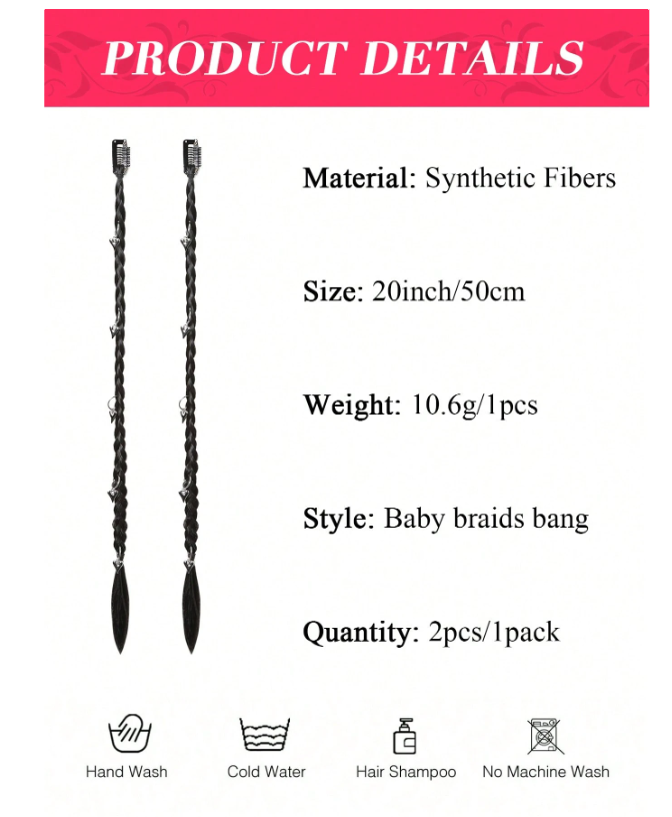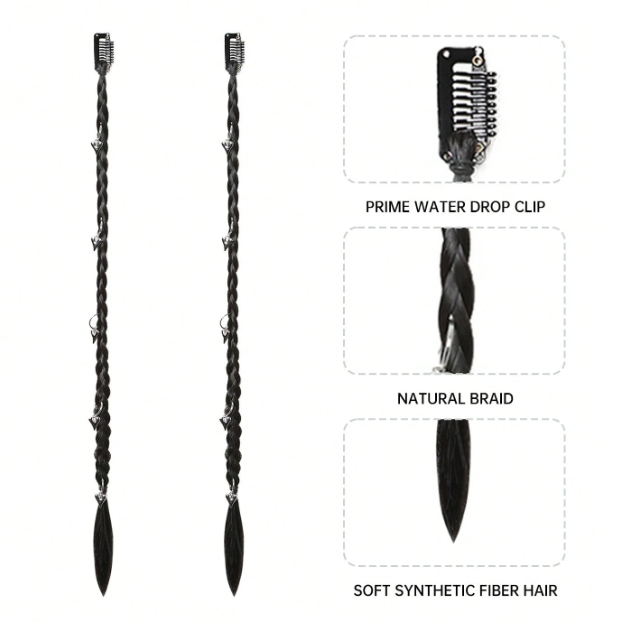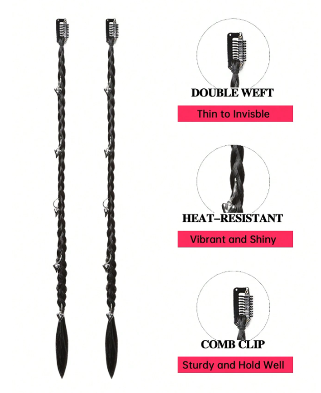 2 PCS Braid Hair Extensions, Baby Hair Braids 20inch Boxing Clip In Braid Synthetic Natural Brown Braid Extensions For Women's Daily Party Use ( Heart Shape Decoration)