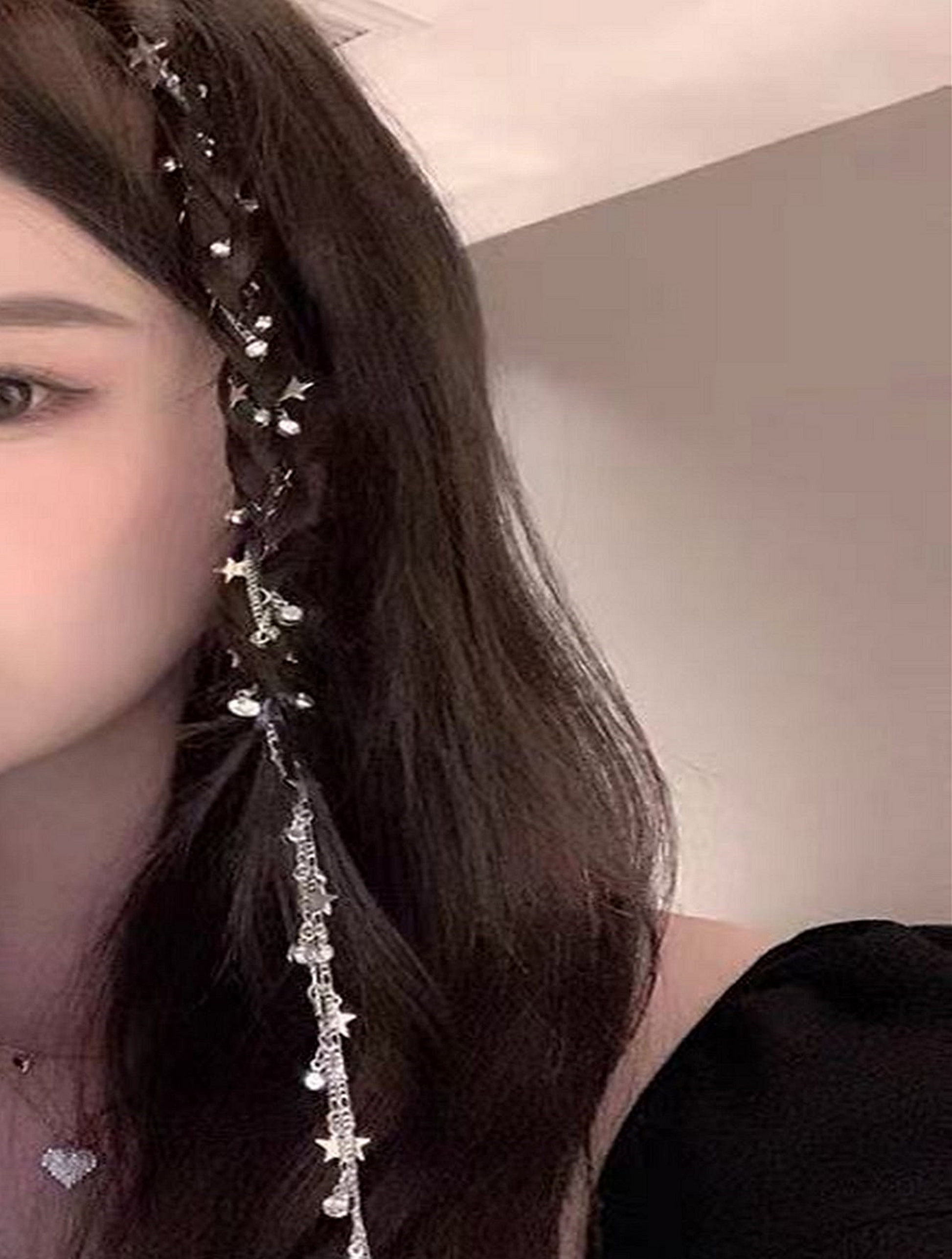 2pcs Women Star Rhinestone Braided Hair Chain, Ladies Hair Jewelry Tassel Chain Hairpin Accessories Hair Clips Claw Clips Hair Claws Hair Slide Hair Barrettes, School Stuff