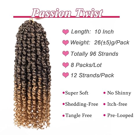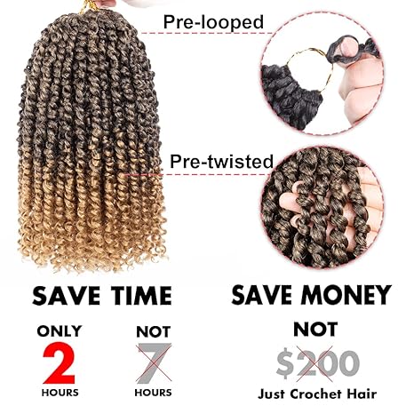 1 Packs Ombre Blonde Pre-Twisted Passion Twist Hair With Curly Ends 10 Inch Short Passion Spring Twist Crochet Braids Hair Synthetic Bohemian Braiding Hair Extensions for Women