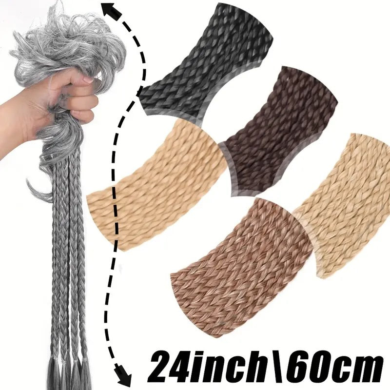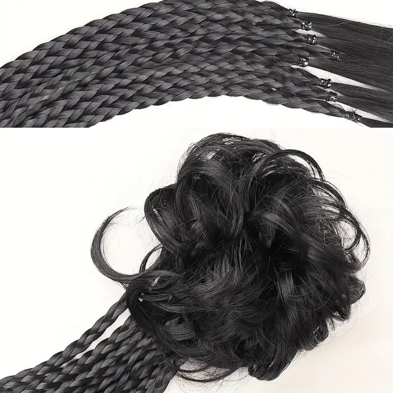 60.96cm Black Women's Easy-to-Wear Synthetic Updo Hair Extension - Ponytail Wig with Braided-like Texture, Natural Look for Everyday, Parties, Formal Events - Secure Attachment for All Light Beige Tones & Hair Types, Hair Wig, Party Hairpiece, Low Maintenance Hairstyle.