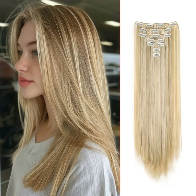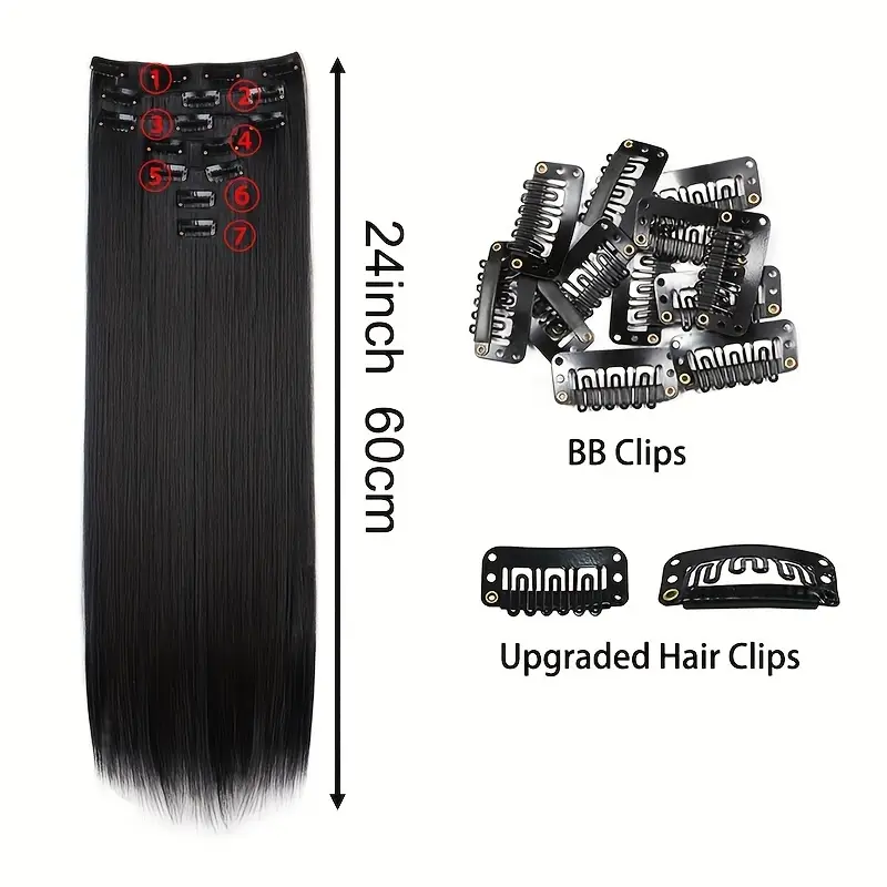 Synthetic Long Hairpiece Fit Straight Hairpiece 16 Secure Clips Hairpiece Suitable for Any Style for Women