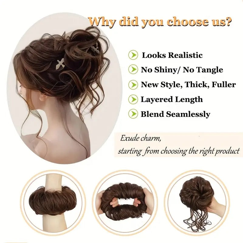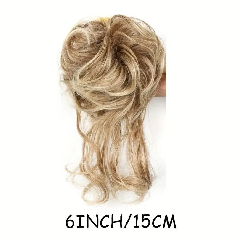 15.24cm Blond Mix - 6 Inch Synthetic Hair Bun Chignon - Messy Curly Elastic Scrunchy False Hair Piece for Women & Girls, Black/Dark Brown/Light Brown/Blonde Dye Options, Easy to Style for Daily, Party, Wedding, All Ethnicities, Hair Accessories.