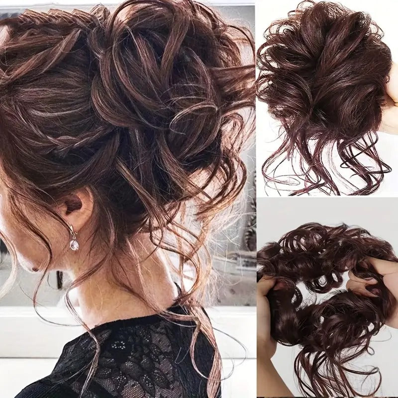 Brown - 6 Inch Synthetic Hair Bun Chignon - Messy Curly Elastic Scrunchy False Hair Piece for Women & Girls, Easy to Style for Daily, Party, Wedding, All Ethnicities, Hair Accessories.