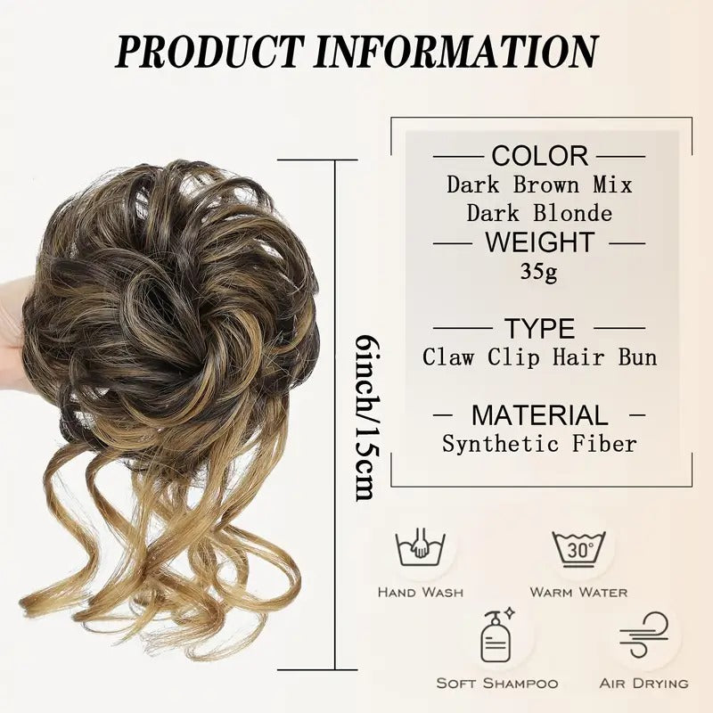 15.24cm Dark Brown 6 Inch Women'S Christmas Fashion Messy Bun Ponytail - Loose Curly Hair Accessory for Daily, Party & Holiday Wear, Secure Hold Hairpin, Festive Hairpin, Sporty Style.